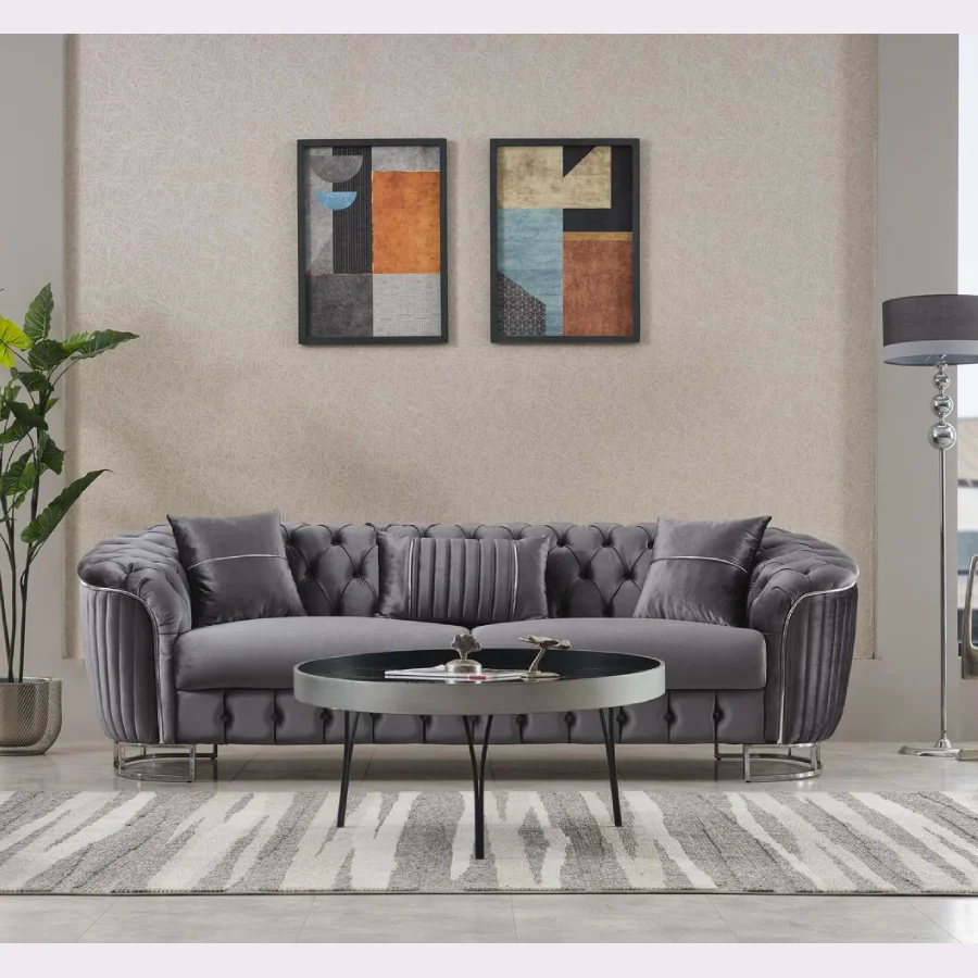 This grey velvet sofa pair bring timeless elegance and modern luxury into your living space. It is a stunning blend of Turkish craftsmanship and contemporary design that adds a premium ambience to UK homes.