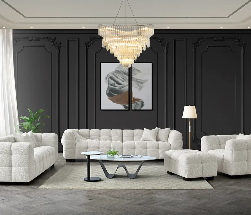 Showcase your luxury and style with our Sofa set in Oatmeal Boucle Fabric.